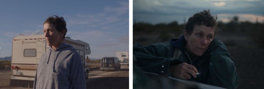 광활한 들판, 낡은 캠핑카, 부서진 도로—그 어떤 대사보다 강한 이미지들은, 인간이 자연 속에서 얼마나 작고도 단단한 존재인지를 묘사한다. 관객은 펀의 시선으로 미국을 여행하고, 그 속에서 그녀의 내면과도 조우하게 된다. 이 영화는 ‘보여주는 영화’의 정석이며, **시네마 베리떼**적 감각의 교과서다.